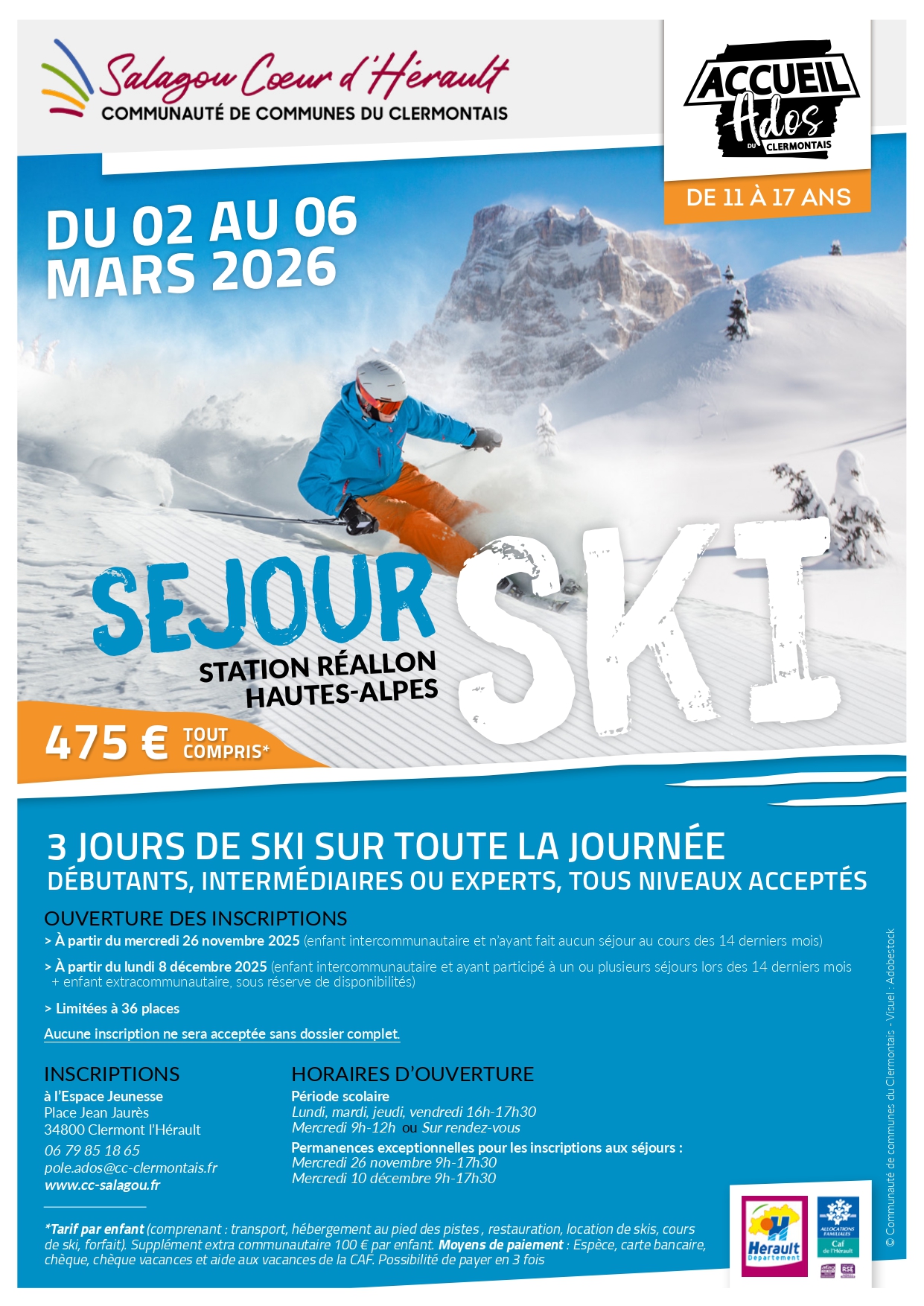 Cette année encore, le service Jeunesse de la Communauté de communes du Salagou Coeur d’Hérault invite les ados de 11 à 17 ans (de notre territoire et au-delà !), à dévaler les pistes enneigées pour les vacances d’hiver !