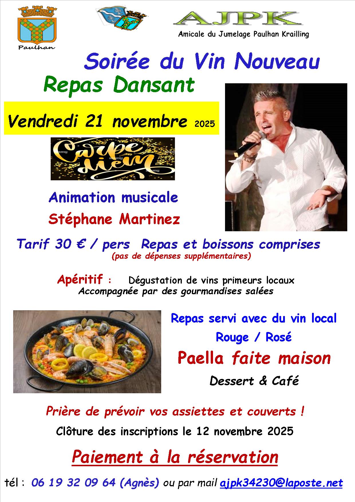 Vous pouvez vous inscrire jusqu'au 12 novembre 2025 par téléphone 06.19.32.09.64 ou par mail ajpk34230@laposte.net