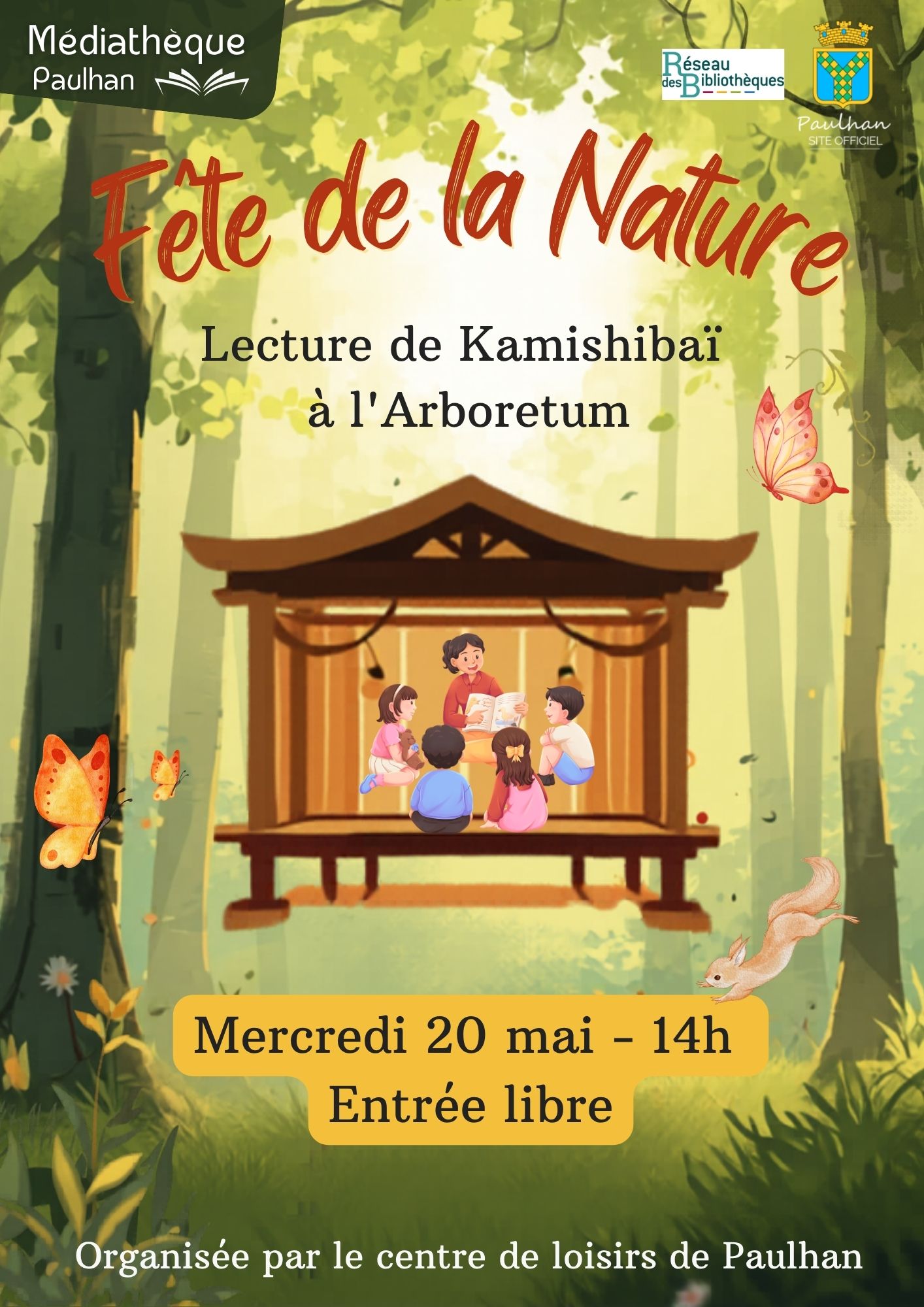 Dans le cadre de la Fête de la Nature, organisée par le pôle de loisirs de Paulhan, la médiathèque vous donne rendez-vous pour un temps de lectures sous les arbres. Le mercredi 20 mai 2026 à 14h00 A l'arboretum - Tout public - Accès libre - Gratuit |