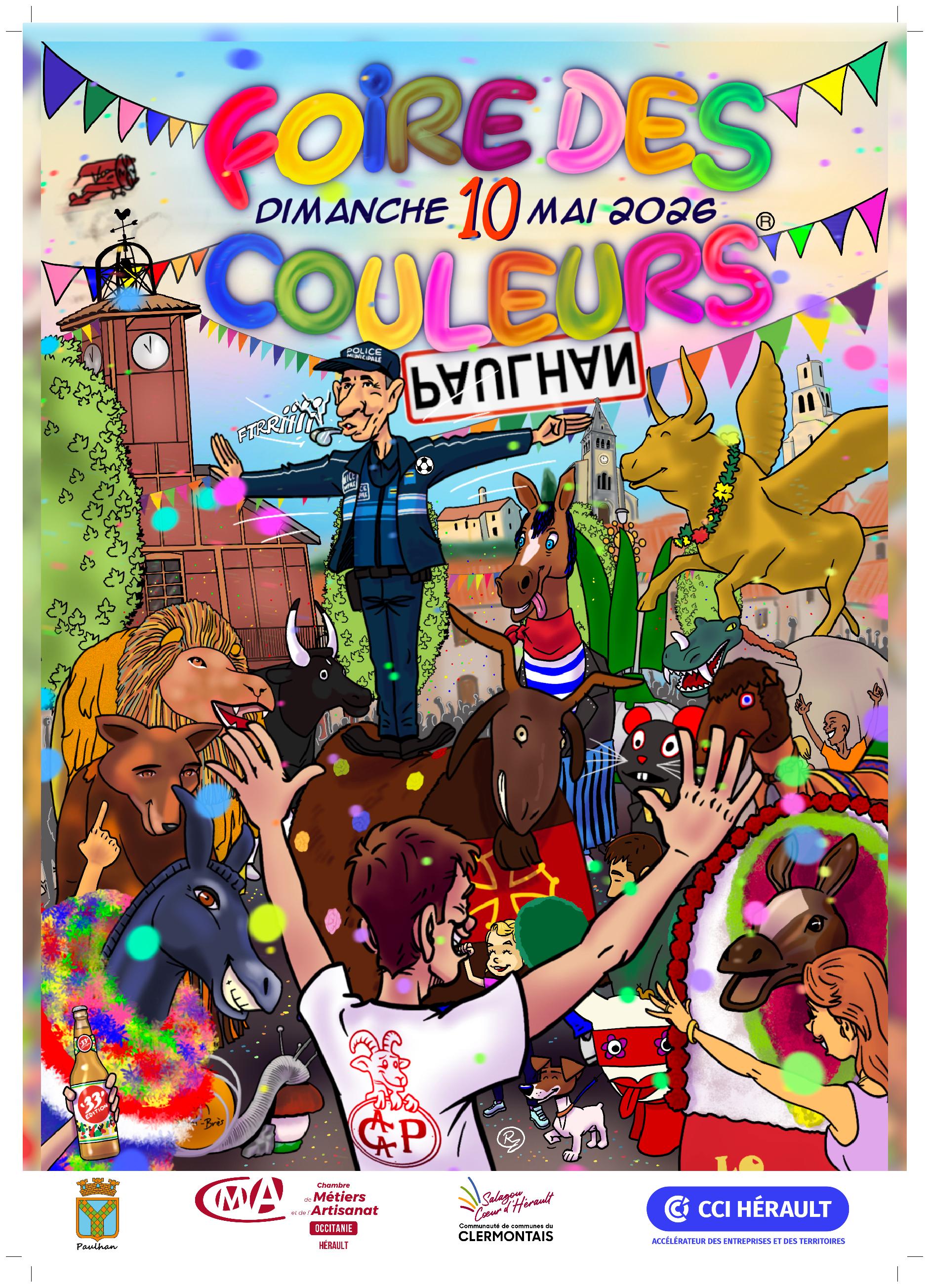 Entre traditions locales et inspirations venues d’ailleurs, cette 33ème édition s’annonce haute en couleur, mêlant patrimoine, créativité et convivialité. Un rendez-vous attendu Au fil des années, la Foire des Couleurs est devenue un événement phare de la vie locale, rassemblant habitants, visiteurs et passionnés dans une ambiance chaleureuse et festive. Le thème 2026 invite chacun à explorer les symboles, les mythes et les représentations liés aux animaux totémiques, véritables passerelles entre culture, histoire et imagination. Rendez-vous le dimanche 10 mai 2026 à Paulhan de 9h à 18h pour célébrer ensemble cette 33ème édition ! Pour les puces : 10€ les 5m (se présenter le matin de la foire pour placement) Le périmètre de la foire sera interdit au stationnement et à la circulation le dimanche de 1h du matin jusqu’à 19h. Nous vous conseillons vivement de laisser votre véhicule dès la veille en dehors du périmètre si vous devez circuler. Des grands parkings gratuits seront mis à disposition autour du village et seront signalés par des panneaux. INFOS :